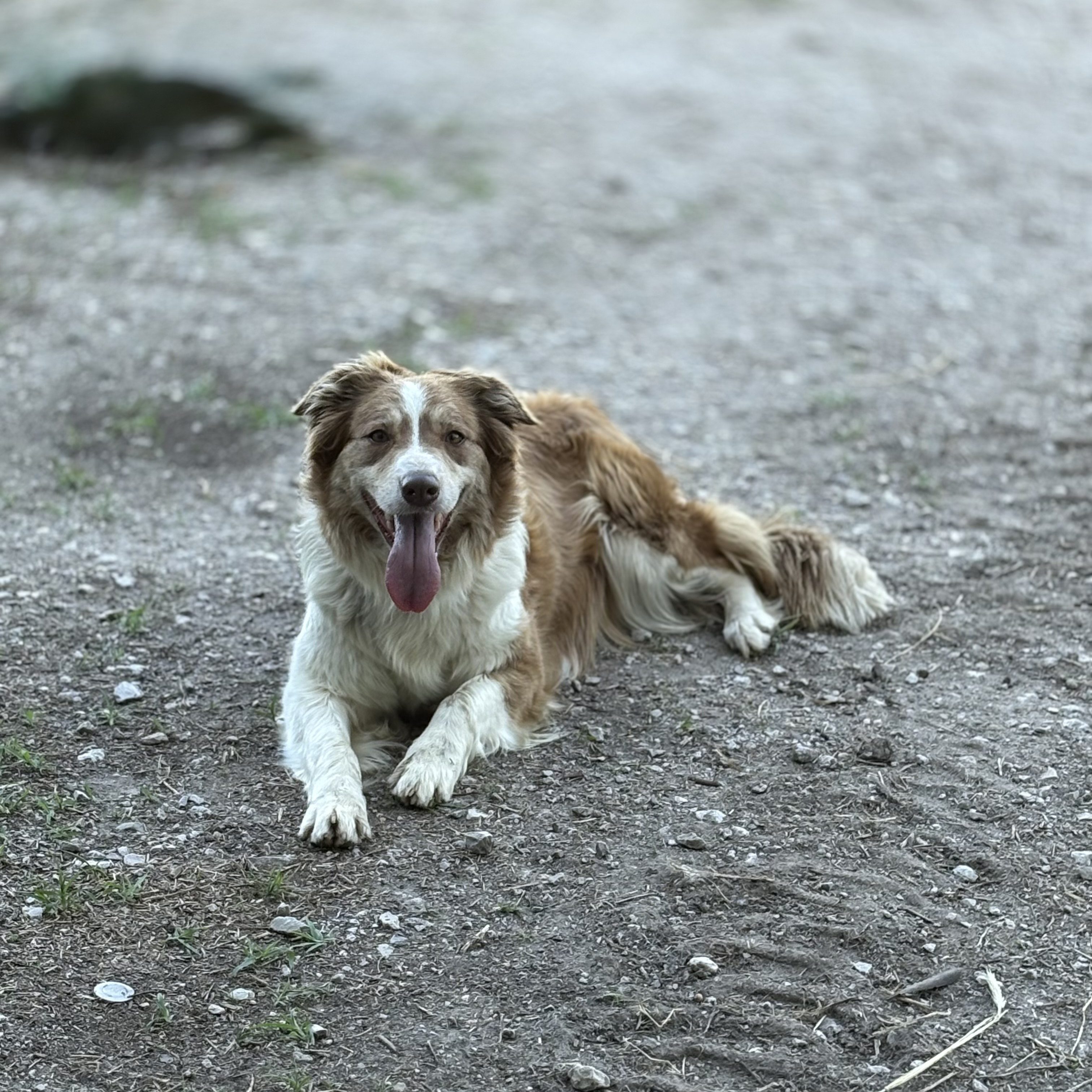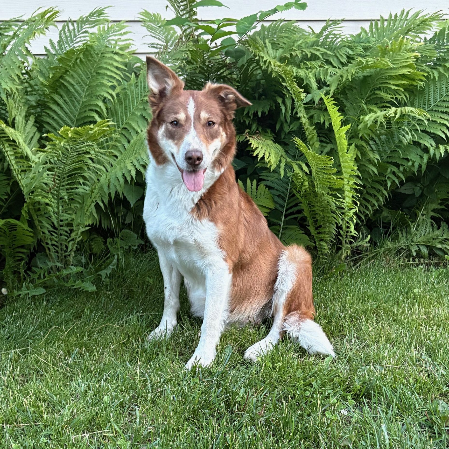 Lacey is a registered purebred border collie. She is a red tri border collie and believe it or not she is Rosie’s sister! Lacey is very sweet and is continually wanting to please. She enjoys learning and is always ready to try a new trick. Some of her favorite pastimes are playing fetch, cuddling, and bird watching. Lacey loves people and couldn’t be happier than to be with us. Lacey is DNA and health tested.